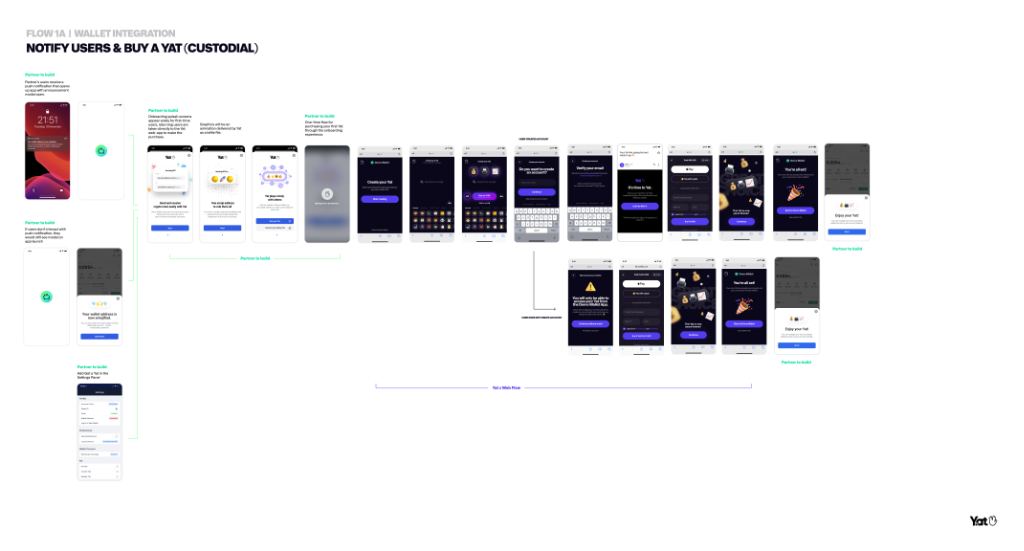 This flow covers the journey of partner app users purchasing a Yat. We recommend that partnering apps enable the user to enter the journey from at least 3 points: