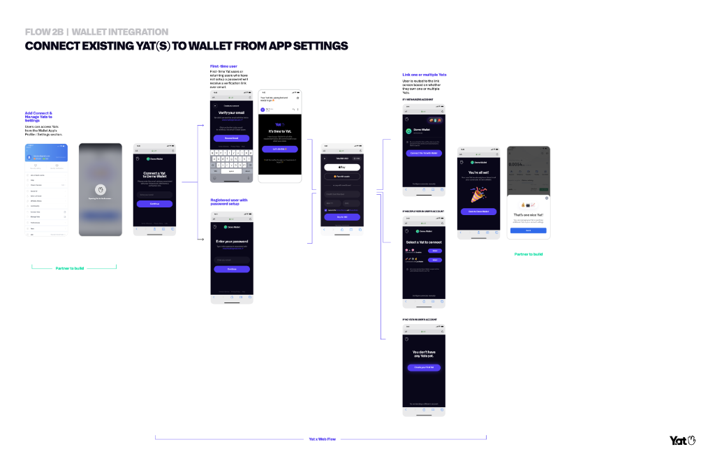 - Partner’s return URL that the Yat web app redirects to once a user completes the integration steps in our web app (Flow 1 & 2)
