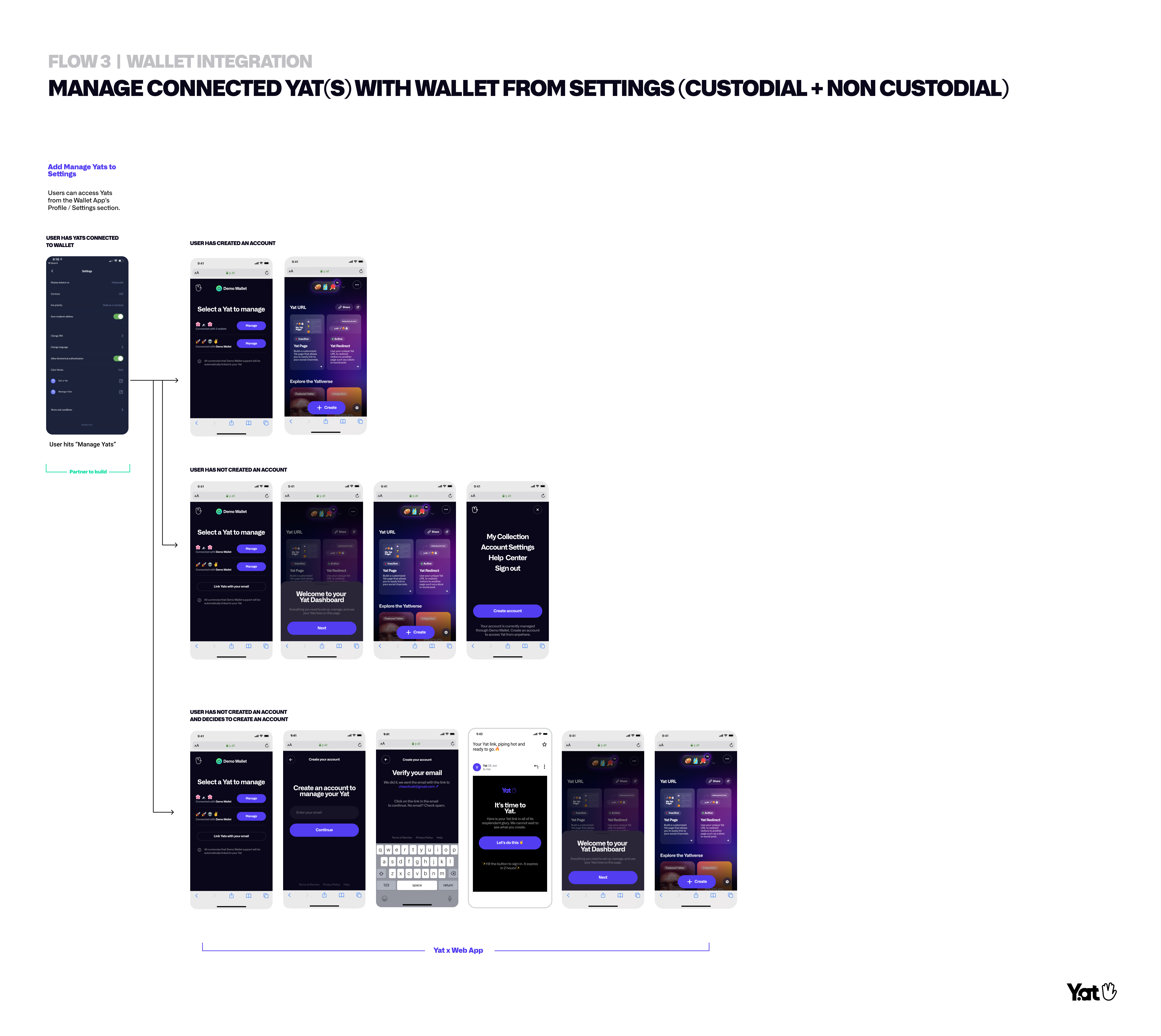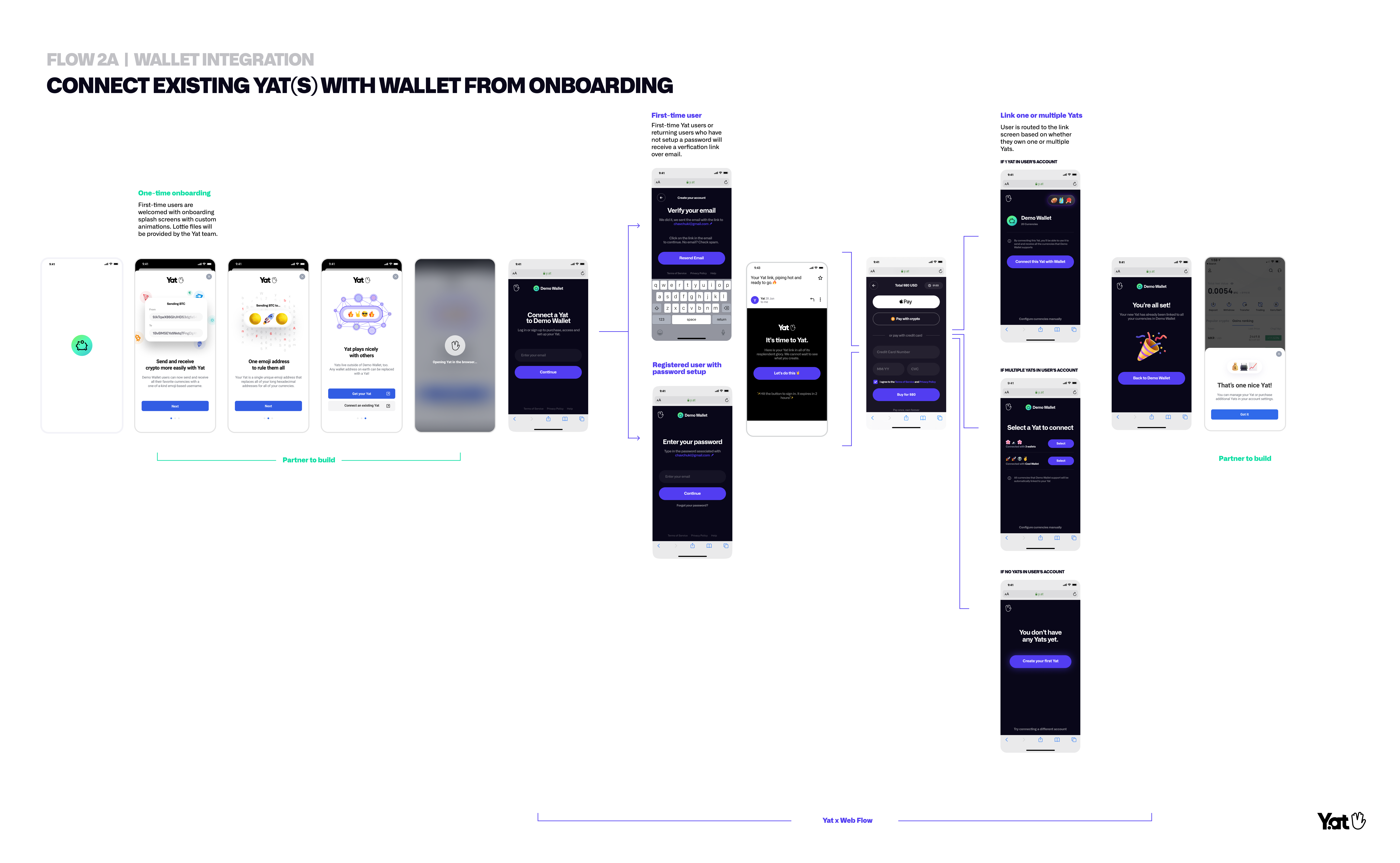 - Partner’s return URL that the Yat web app redirects to once a user completes the integration steps in our web app (Flow 1 & 2)