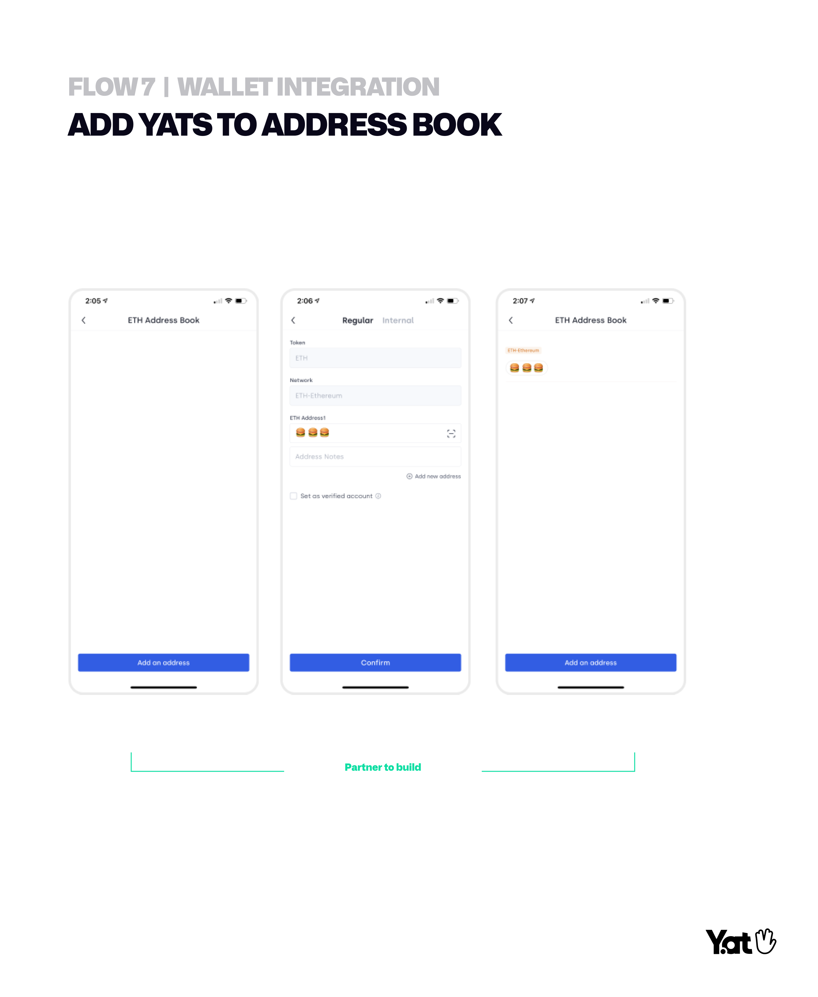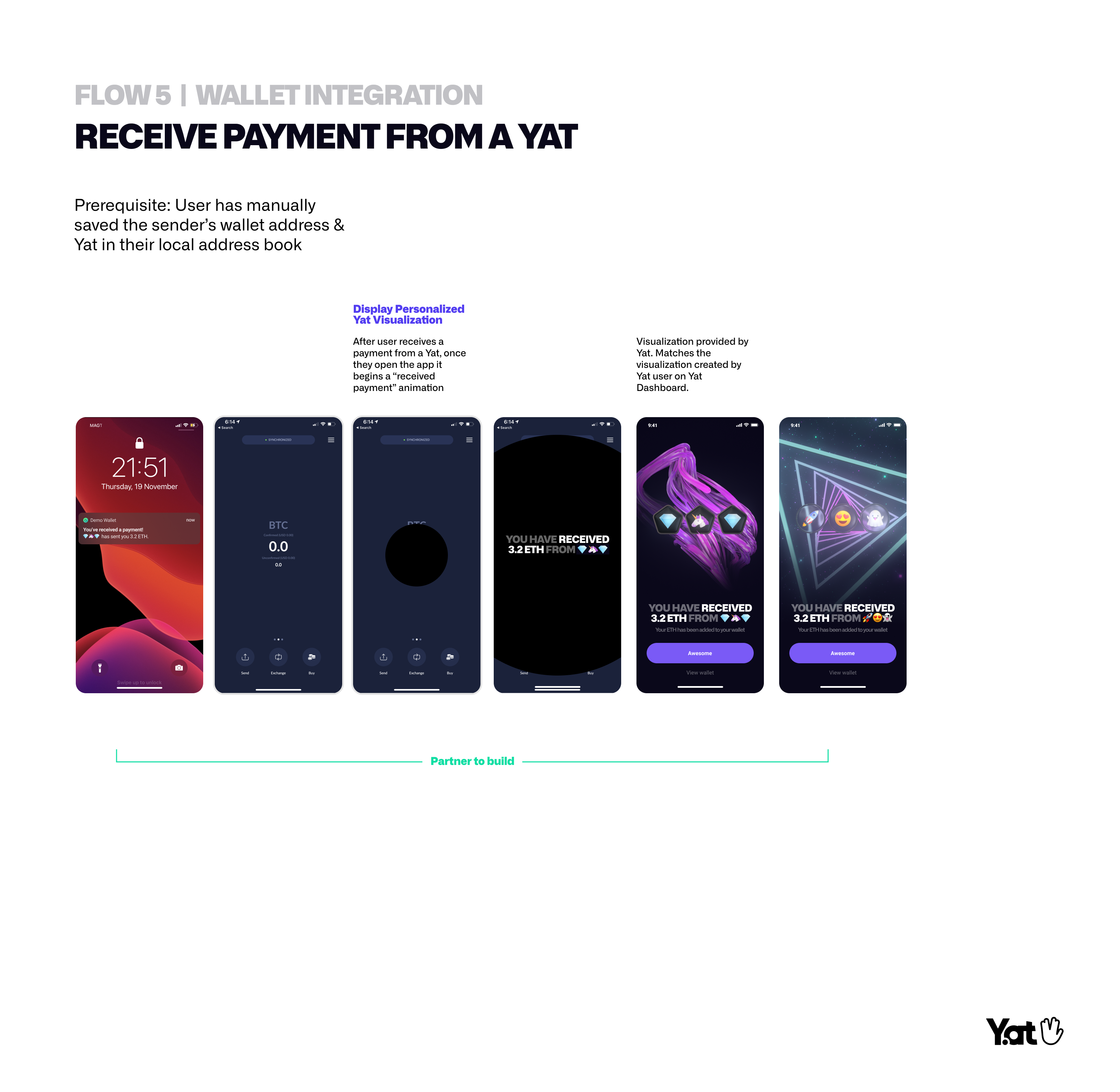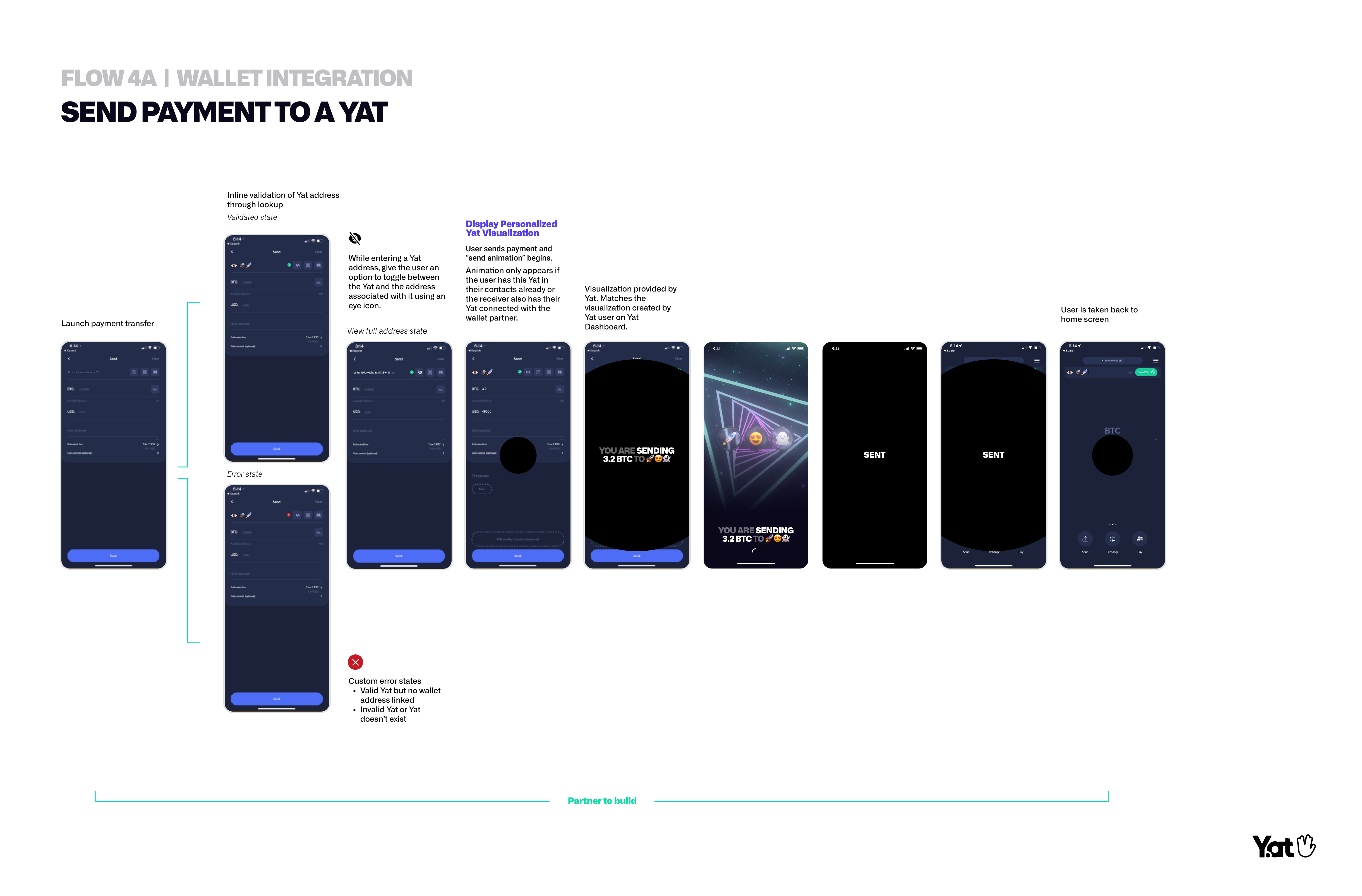 This guide describes the Yat integration process for the wallet partners. This guide contains a curation of flows recommended for wallet partners who want to integrate Yats to simplify the experience of sending and receiving payments.