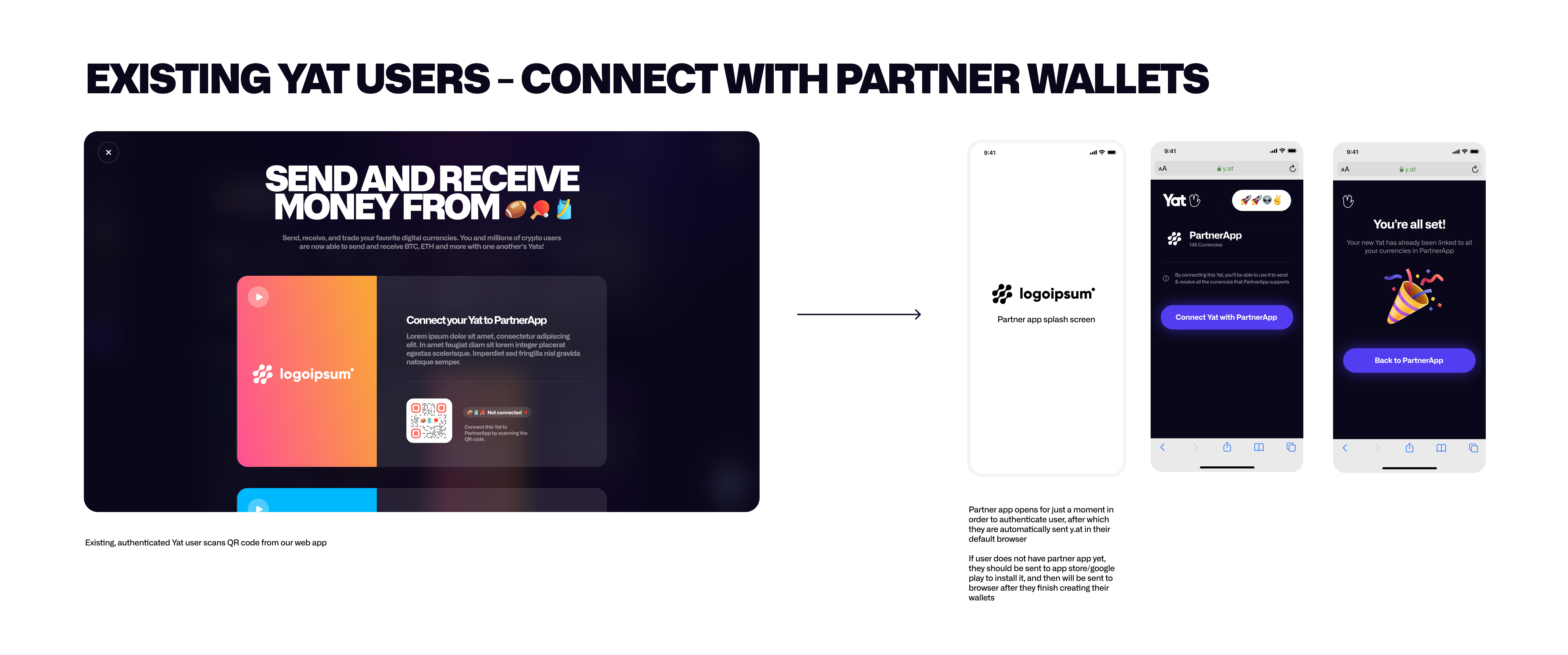- Partner app's deep link scheme for the redirection of the existing Yat users to the partner app through a QR code (2b)